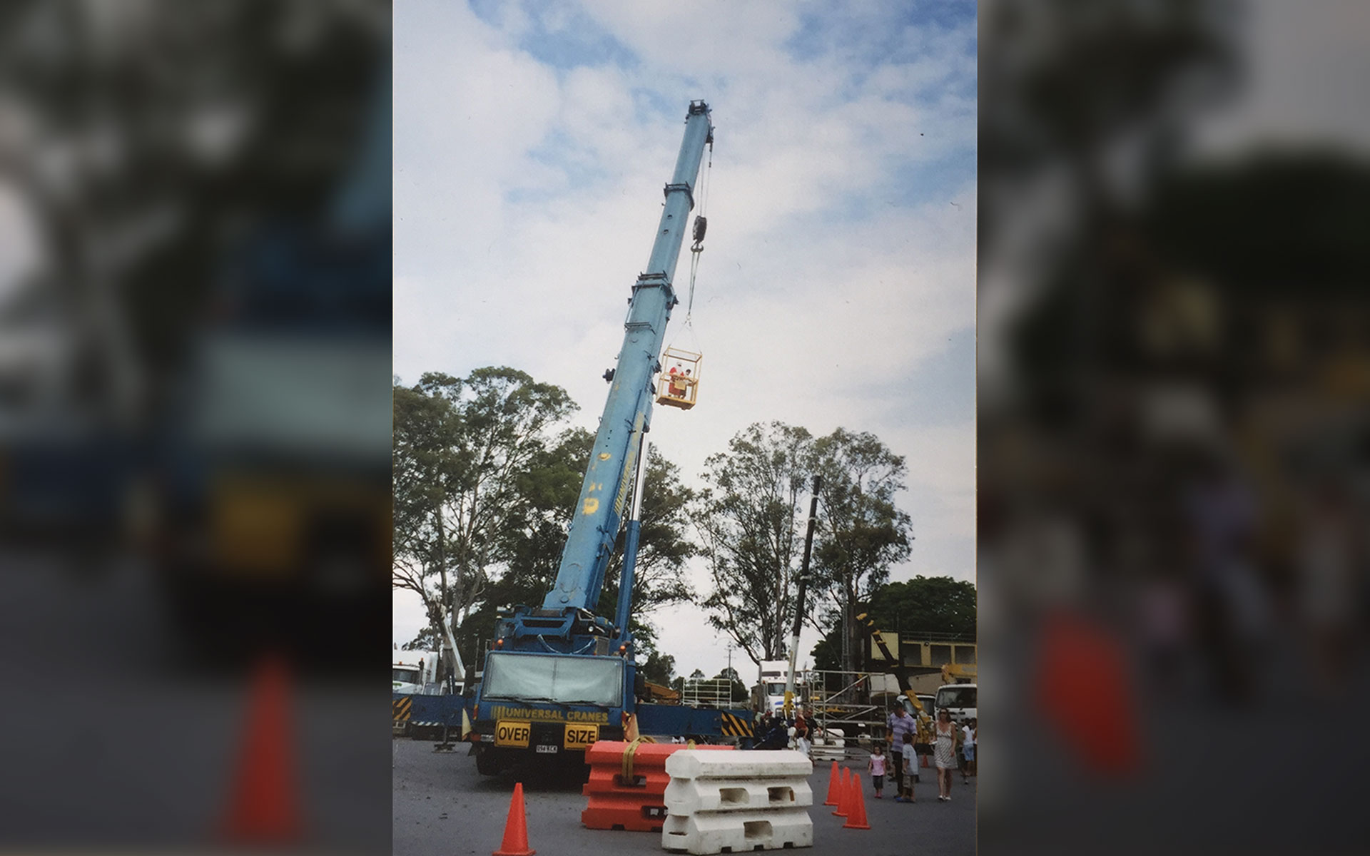 Albert’s favourite piece of machinery, the Flexifloat Jack up with Boom Truck. The float is still in use today and has been used on countless projects.