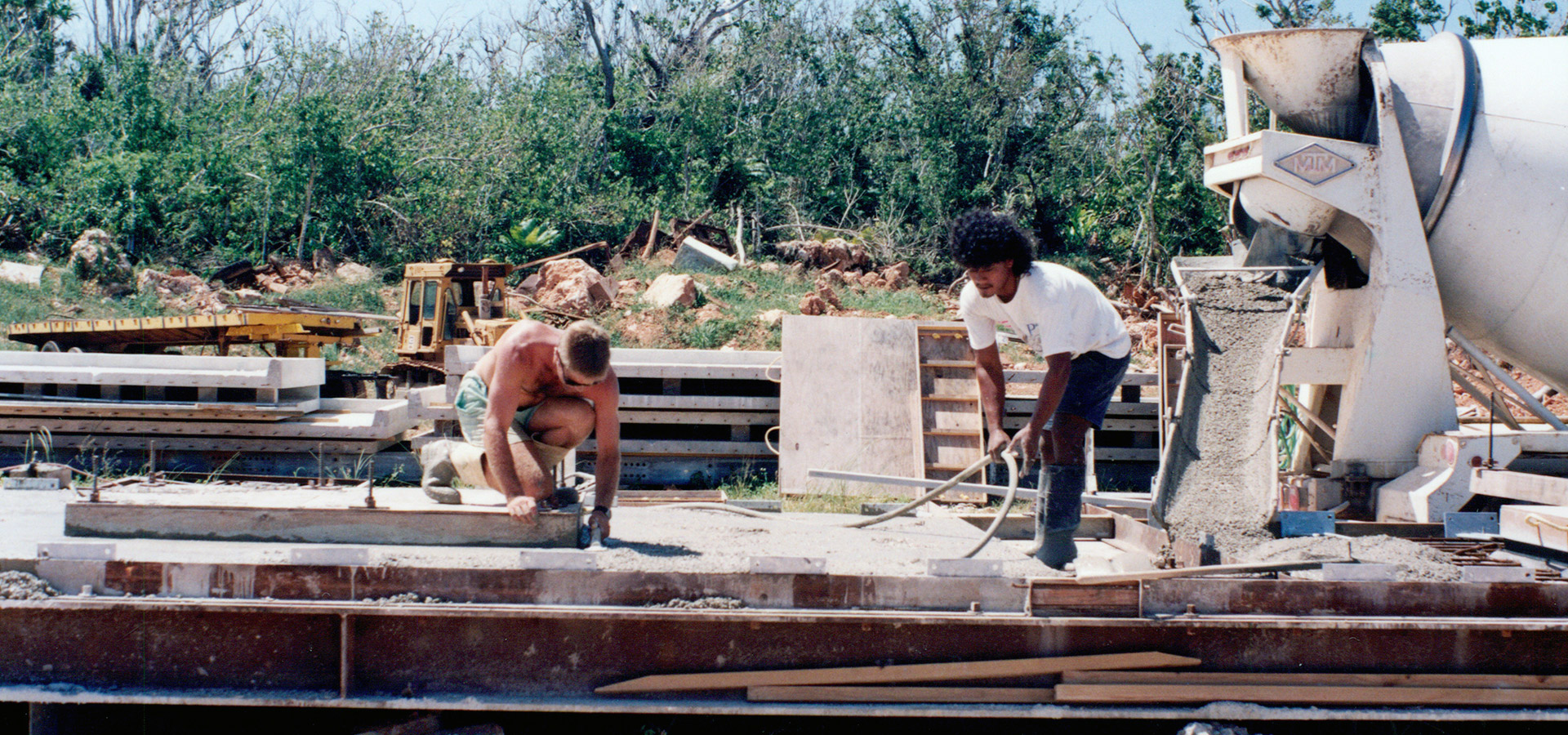 Pictured some of the original team: American Mark and Albert Smith, Brett Warn & Reuben preparing and pouring roof panels for Atero Houses, Yigo Yard. Our second project, the Fema House build between 1993-1994. Some of the houses are still in use today with the houses remaining within the original owner’s families.