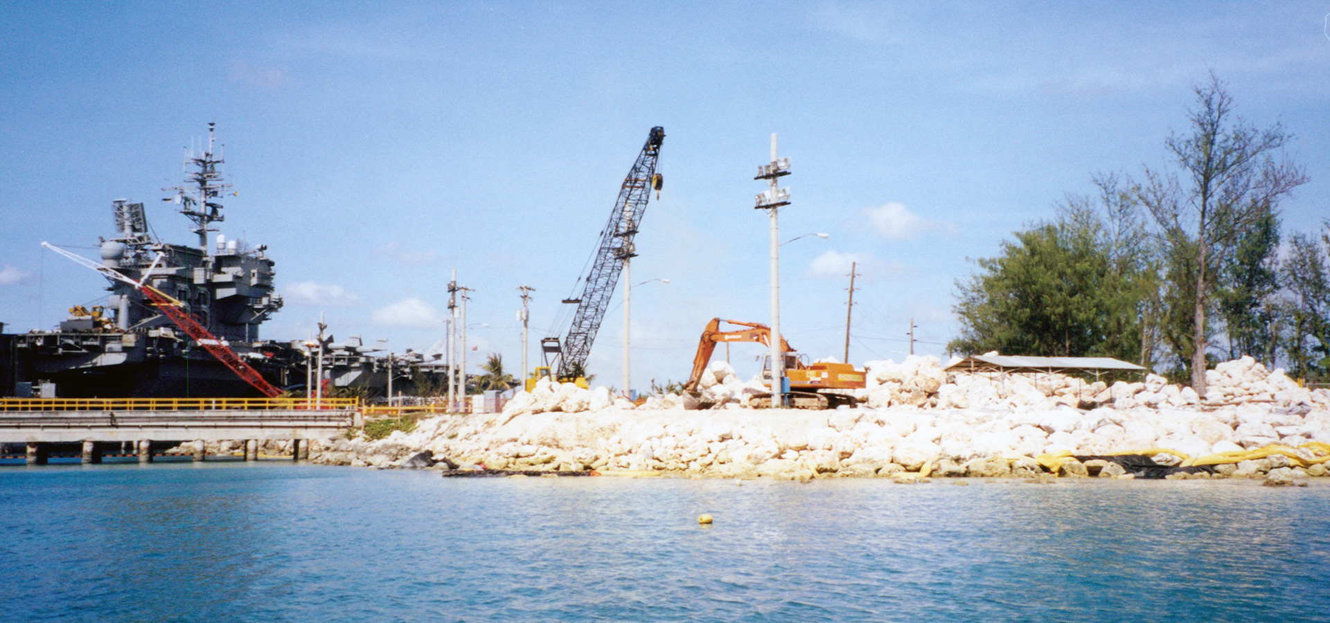 Sea wall construction for the Port of Guam for the USA Navy at Orote Point.