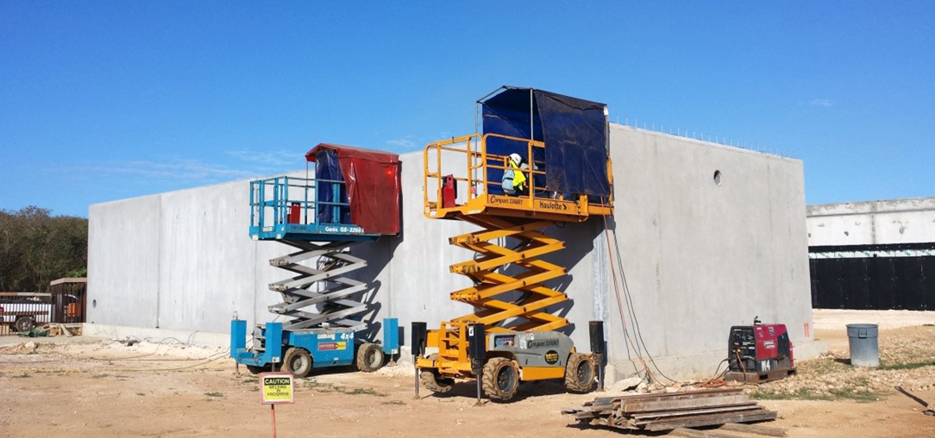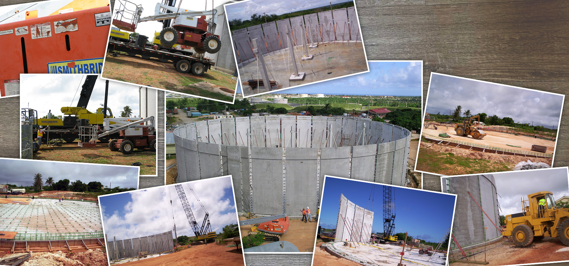 The team erects the Anderson Air Force Water Tank with precast panels and our cranes and building equipment.